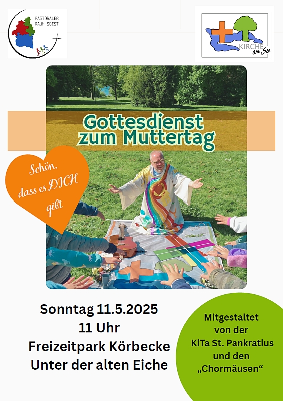 Nach dem vertrauten Motto „Wir sind die Kleinen, und wir fangen an!“ wird der erste Gottesdienst der neuen Saison unter der alten Eiche im Körbecker Freizeitpark von der KiTa St. Pankratius mitgestaltet. „Schön, dass es dich gibt!“ ist das Thema am Muttertag, 11. Mai um 11 Uhr. Kein Kind ohne Mutter – keine Mutter ohne Kind: dankbar erinnern wir uns daran.