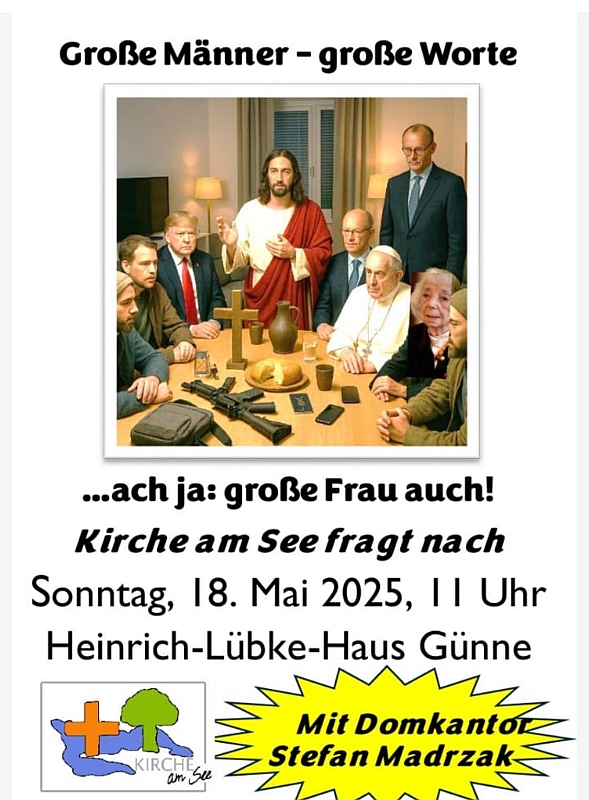 Der Abschied Jesu und der Abschied in der Kirche sind Übergänge – in eine neue Zeit. Und wir schauen auch auf „den Neuen“ in der Kirche: Wer ist Leo XIV? Was ist seine erste Papst-Botschaft, und was bringt er mit in seinem Lebens-Rucksack? Wir sind neugierig auf ihn! Die Feier um 11 Uhr am Heinrich-Lübke-Haus wird von Domkantor Stefan Madrzak klangvoll bereichert.