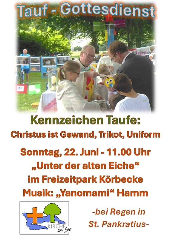 Die Feier findet an einem wunderschönen Ort statt: unter der alten Eiche im Freizeitpark Körbecke – ein stimmungsvoller Platz, der Raum für Gemeinschaft, Freude und Segen bietet. Für die musikalische Gestaltung sorgt die Gruppe Yanomami Hamm, die mit ihrer Musik der Feier eine besondere Atmosphäre verleihen wird.