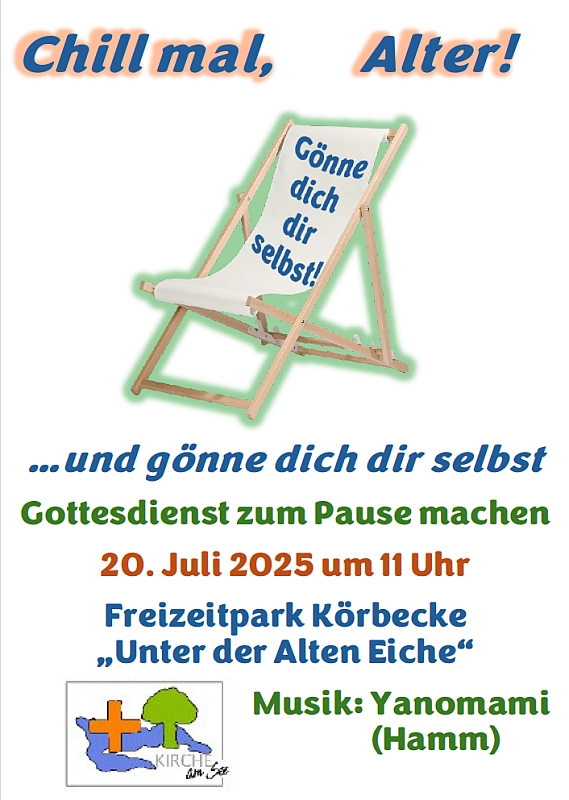 Chill mal, Alter! – Kirche am See am kommenden Sonntag, 20. Juli, um 11 Uhr in Körbecke im Freizeitpark