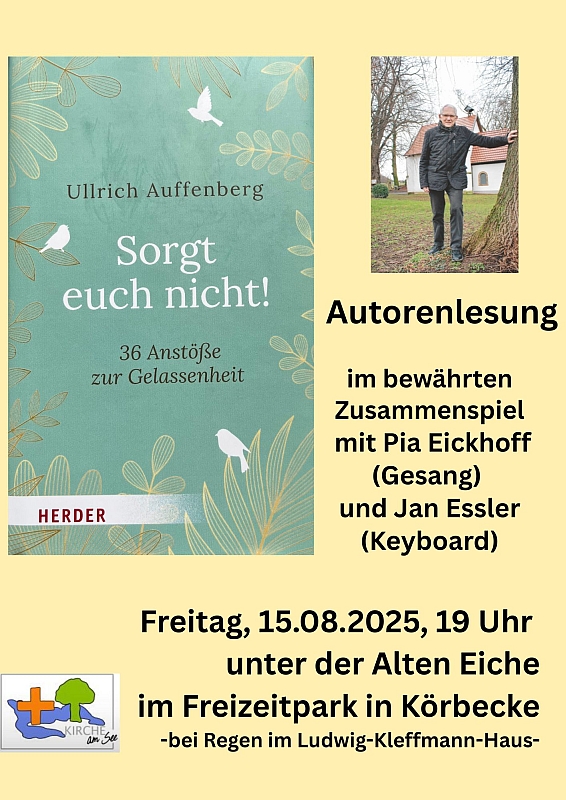 Am Freitag, dem 15.08.2025 findet aus diesem Anlass um 19:00 Uhr eine Autorenlesung in bewährter musikalischer Begleitung von Pia Eickhoff (Gesang) und Jan Essler (Keybord) unter der Alten Eiche im Freizeitpark Körbecke statt.
