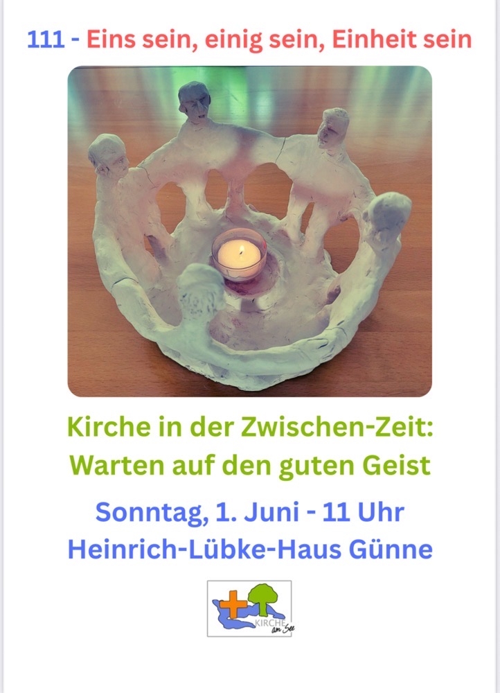 Die Zwischen-Zeit des Glaubens, die Zeit als Kirche, steht im Blick der Kirche am See am Sonntag, 1. Juni 2025, um 11:00 Uhr am Heinrich-Lübke-Haus in Günne.